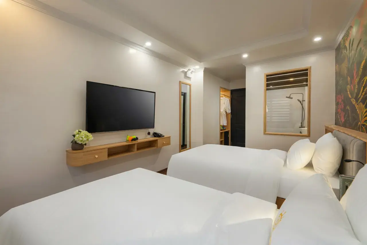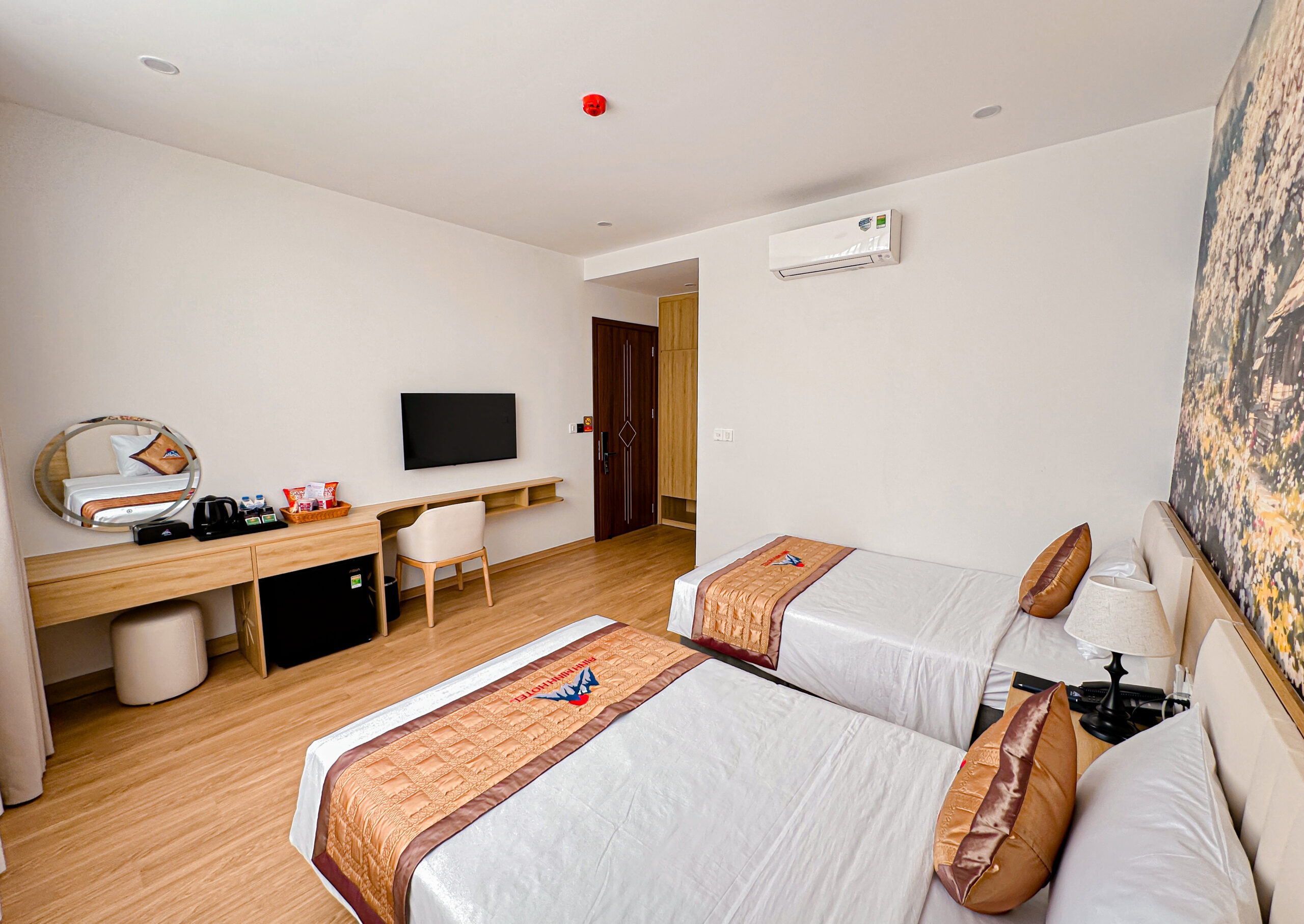 Là hạng phòng cao cấp nhất, Binh Minh Suite sở hữu không gian rộng rãi, ban công riêng, tùy chọn kết nối linh hoạt và nội thất được bố trí tinh tế — mang đến trải nghiệm lưu trú vượt trội ngay giữa trung tâm Bắc Hà.