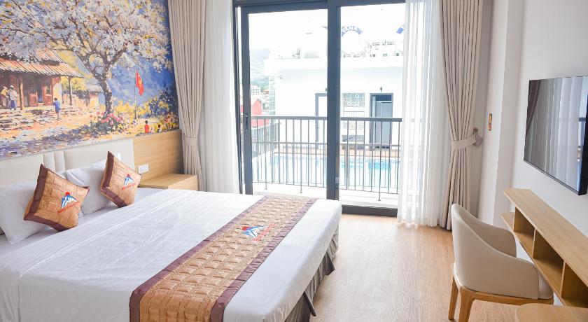 Với ban công riêng hướng ra không gian yên bình của Bắc Hà, phòng này kết hợp sự tiện nghi rộng rãi, ánh sáng tự nhiên và phong cách độc đáo, điểm xuyết những chi tiết thiết kế địa phương độc đáo.